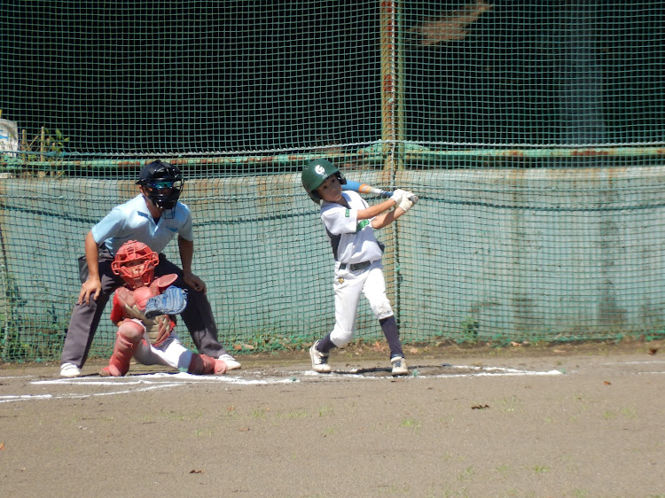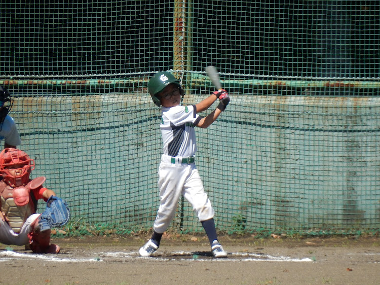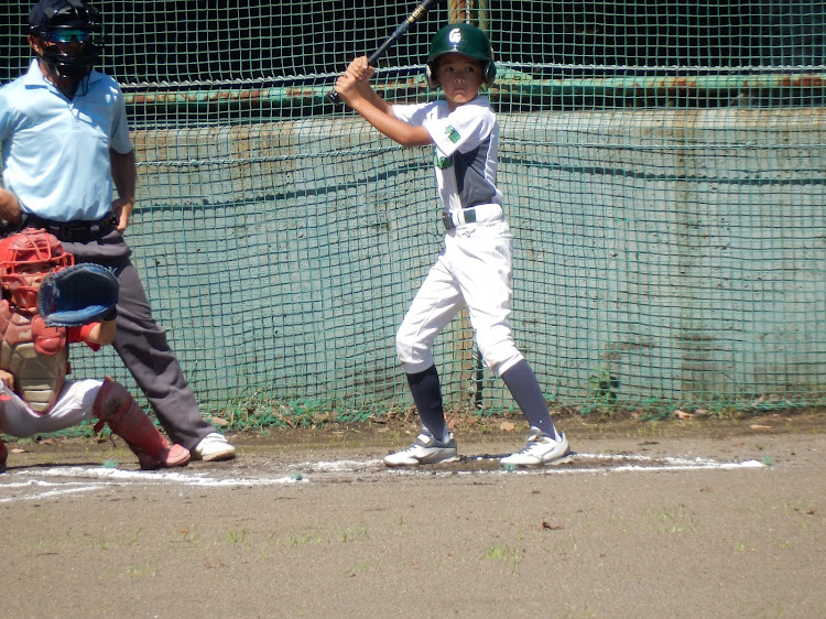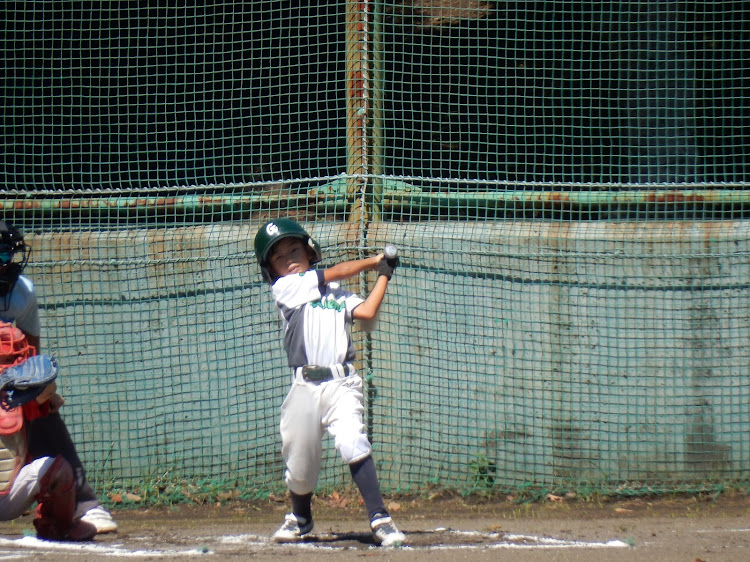 スポ少秋季大会の大事な初戦、相手は相性がいい相手とは言え、どうか?初回3者凡退で抑えていい出だし。1回ウラの攻撃では相手バッテリーの乱れから出たランナーをすべて返すという効率の良いバッティングでまずは4点先取した。その後も着々と追加点を奪い3回まで7点とリードした。守ってはコウヘイの制球がすばらしく3回まで毎回の三振と打たせて取るピッチングでパーフェクトの内容。4回からソウマにバトンタッチしたがソウマもコントロールとナイススピードで継投もよかった!4回10:0コールド勝ちのスタートとなった!
