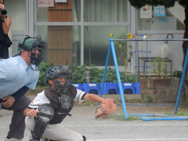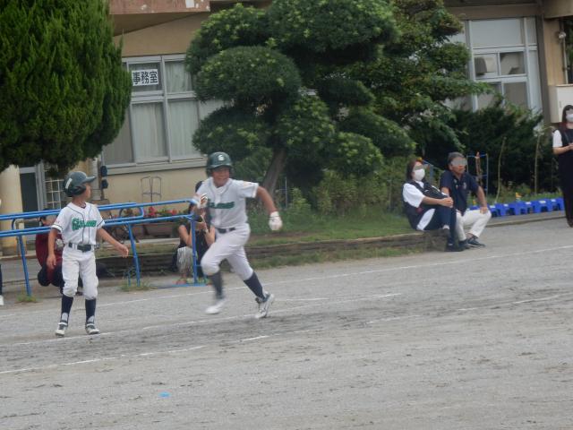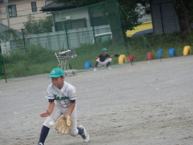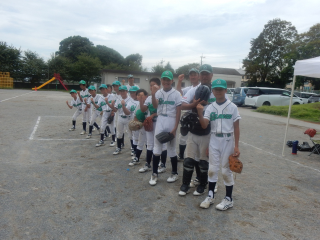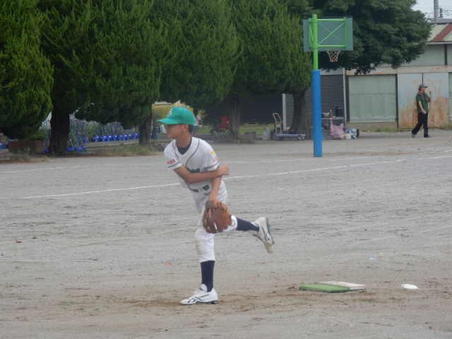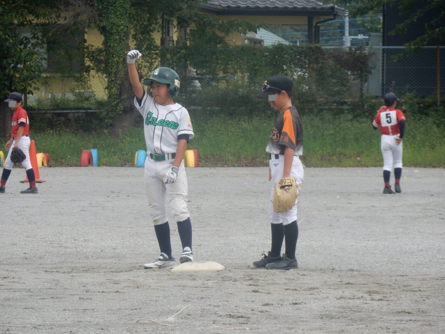 先発コウタは落ち着いた立ち上がりから3回を無得点に抑えるナイスピッチング!守備はシュリがファウルボールをダイビングキャッチするなど気迫のプレーがチームを盛り上げた!攻撃では2回ワタルのライトオーバー2塁打からユウセイの絶妙なバントが内野安打、その後ボークなど2点、なおも2死2,3塁からコウスケが狙い打った打球はセンターを超えるタイムリー2塁打、そしてシュリの狙いすました打球は左中間へ特大ホームランとこの回一挙6点を挙げて勝敗を決した!コウタは最終回内野が乱れて2人のランナーを出したが最後はピッチャーゴロに仕留めて「ゲーム」コールド勝ちの発進となった。(4回変わった投手から速球をライトへ好打したレオンの打がよかった)