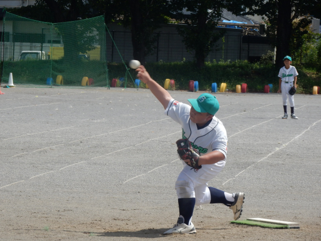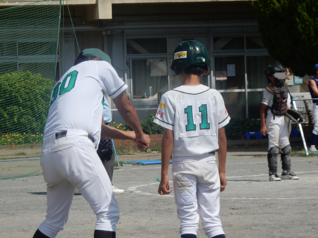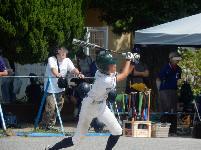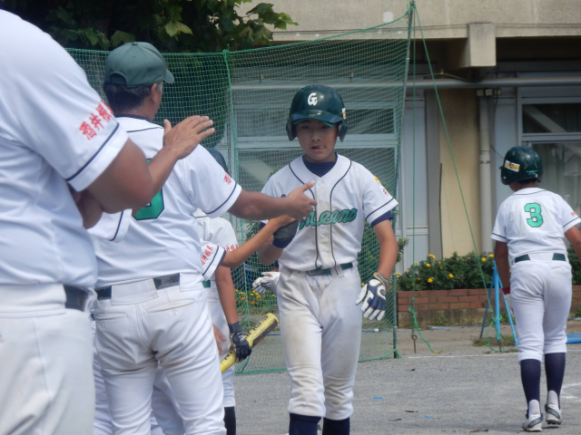 初回相手の内外野のエラーで出たランナーをこのところ得点圏打率トップのシュリのタイムリー、ルイの2塁打で3点を先取した。先発レオンのピッチングは3回を3者凡退に抑えるナイスピッチング!グリーンズの攻撃は2回にも四球、エラーのチャンスに、シュリのタイムリー、レオンのレフトへの痛烈な2塁打でさらに3点追加した。4回にはシュリのこの日猛打賞となる3本目が真ん中低めをうまくすくい上げて左中間のホームランとなった。最終回ファイターズの攻撃をコウスケが4人で片づけて締めくくり、11:0コールド勝ちで完勝した!