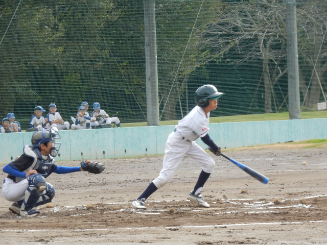 2025年度大塚杯初戦vs富南スポーツ少年団 1回表先頭のシュリがいきなりレフトスタンドに先制ホームランを叩き込んでゲームは始まった。その後4四球をはさんでコウタ、レオン、ユウセイ、一巡してシュリ、コウタと6長短打で一挙8点を挙げて試合を決めた。投げてはシュリが初回に内野ゴロの間に1点を許しただけで2回を投げ、3回も続くレオンが3者凡退に抑え3回コールド勝利。シュリがHRを含むレフトへ3本、レオンもレフトへ3本のマルチ安打で勝利に貢献した。初回無死満塁でのユウセイの技ありライト前ヒットも良かった。