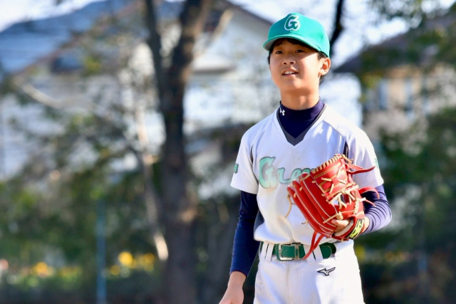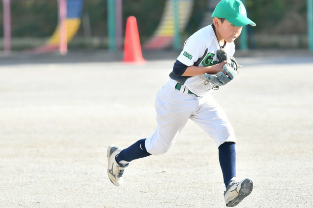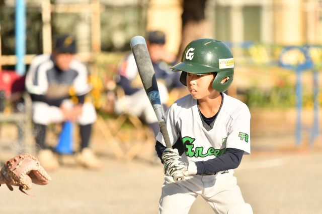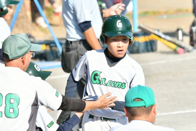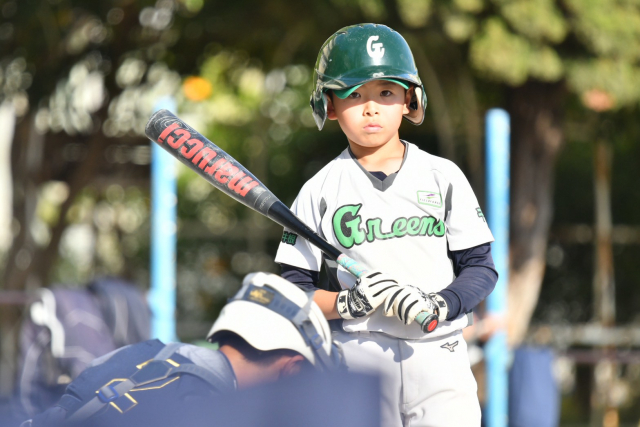 最近2試合打撃不振のグリーンズどうか?1回ウラいきなりの5連打で5点を先取された。先発のレオン、代わったシュリの球をいずれも完ぺきに捕らえられた当たりだった。2回ショートのエラーで出たアキトをアオヒのタイムリー2塁打で返し、なお2死後エラーで出たユウセイとヒットのシュリがコウタの内野安打の間にかえって4点目、1点差に詰め寄った。2回ウラ4番に2ランHRを打たれてまたもや追う展開となった。3回レオンの2塁打で盛り上がり、声援を受けてアキトがセンターへの2塁打だったがレオンがホーム寸前タッチアウト!続くアオヒのいい当たりはセンター前に抜けたが、当たりが良すぎてセンターゴロ。その間にアキトがかえり1点を返し後半に望みをつないだ。2回からコウタをマウンドに送り何とか追加点を阻もうとしたが、4回そのコウタも豊上の打線につかまった、6,7,8番の連打でさらに3点を追加されては万事休すとなってしまった、豊上ジュニアBの5年生の打撃は凄かった。5:11で完敗。(豊上は内外野へのフライは2個のみ。グリーンズは5個)