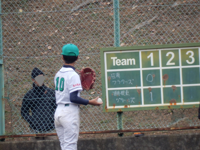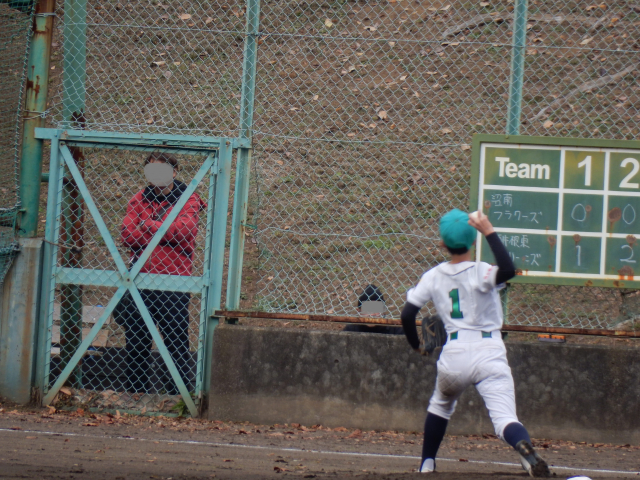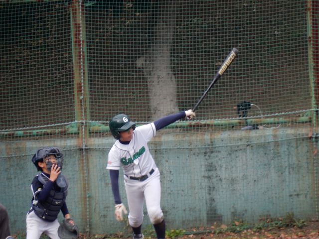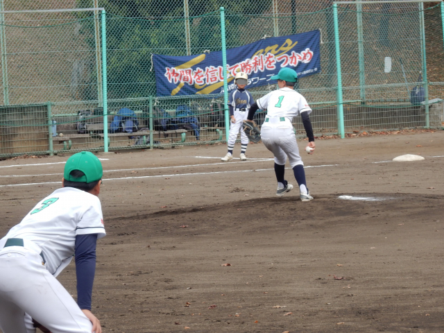 酒井根大会でまさかの敗戦を喫し決勝進出を逃したグリーンズ、今年のライオンズ杯は優勝の大きなチャンス、逃したくはない。実力を出せるか?!実はこの試合を前にレオン、コウスケをインフルで欠いたので急遽アマネを県選抜から呼び戻した監督、初優勝に対する執念を感じた。コウタが先発し、最近3試合の好調さをキープし、フラワーズに得点を許さない。グリーンズはシュリとコウタの1,2番を入れ替え、先取点を狙った。1回ウラ早速そのチャンスがやってきた。コウタが四球、盗塁で2塁へ、シュリのショートゴロで3塁へ、アマネの3塁ゴロでまずは欲しかった先取点が取れた!その後コウタはランナーを残しながらも三振でピンチをかわしフラワーズに点を与えない。一方グリーンズは2回欲しかった追加点、2死後コウタが作ったチャンスにシュリがタイムリー、さらにアマネがレフト前2点目タイムリー!で応え3点のリードをもらったコウタはさらに落ち着いたピッチングができた。3回フラワーズが1死後センター前ヒット、さらにレフトオーバーを打たれたが打ったバッターランナーが3塁を狙い、押し出された先のランナーが3本間にはさまれてタッチアウト、4回も得点を許さなかった。5回から代わったアマネはナイスピッチングで完封リリーフ、5:0で完勝!5点中4点を6年が挙げてつかんだ最大のチャンス、来週はいよいよ決勝だ!