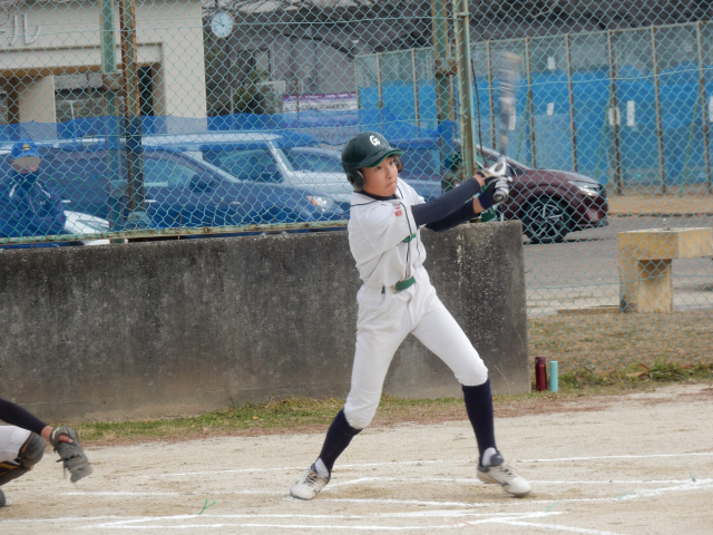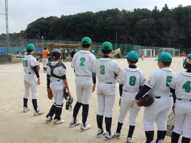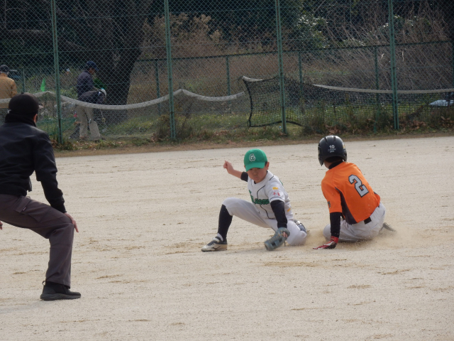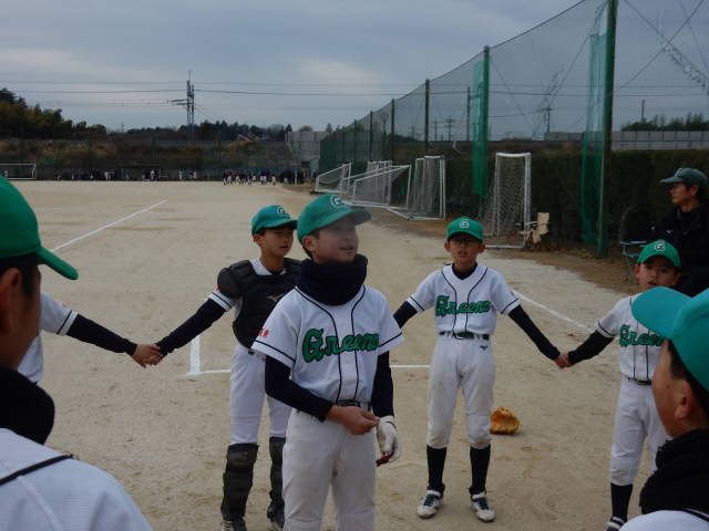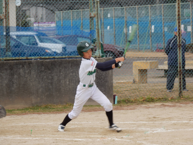 スポ少秋の大会 決勝戦vs高柳サンダース グリーンズの先攻で始まった試合は2回まで無得点の投手戦、試合が動いたのは3回ウラ先頭打者に四球を与えたが9番三振、1番を追い込んだが粘られた10球目センターオーバーのタイムリー3塁打を打たれ先取点を許した。その後動揺したコウタを攻め四球と2塁打、3塁強襲をシュリがよく捕ったが内野安打となり、この回一挙4点を失った。しかしグリーンズも粘る。4回先頭打者のルイが降りぬいた打球はライトセンター間を深々と破り打球は転々とし、ルイはホームにヘッドスライディング!価値ある反撃のランニングホームラン!相手投手も動揺したかコウスケに四球、アオヒのナイスバント、WPで1死1,3塁と攻めたてたが、後続のユウセイ、PHワタルが抑えられて1点にとどまった。3回2死からコウタに代わったアマネは4回ウラ3者凡退に抑え反撃を待った。5回サンダースは投手交代し流れをグリーンズに持ってこれるか!先頭のコウタが意地のレフト前ヒットで出塁、1死後シュリが死球、期待されたがルイ1塁FFで2死、これまでかと思われたが、コウスケが起死回生のセンター横にタイムリーヒット、1点差に迫った!その裏ヒット2本と犠牲フライで2点差となったが、まだ勝利のチャンスはきっとある、ベンチも応援のお母さん方も祈る思いだ!最終回先頭のレオンが粘って四球、代走のアキトがすかさず盗塁を決める、きたあー、2死後コウタが粘って四球を選び2,3塁、バッターはアマネ、一打同点最大の見せ場だ!・・・・しかし無念ピッチャーフライで「ゲームセット」残念だったがナイスゲームでした。拍手!!