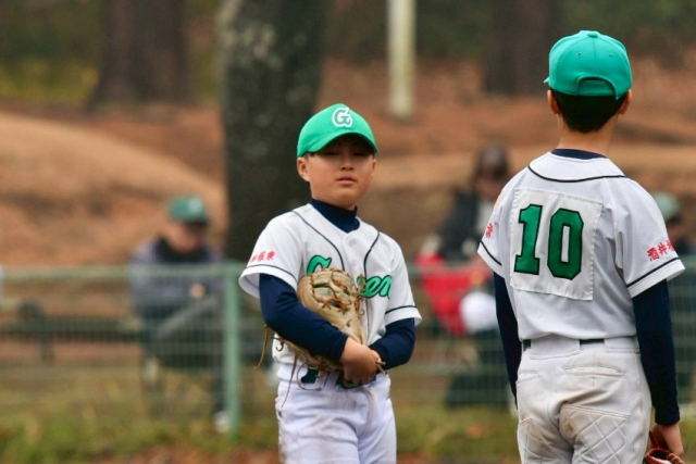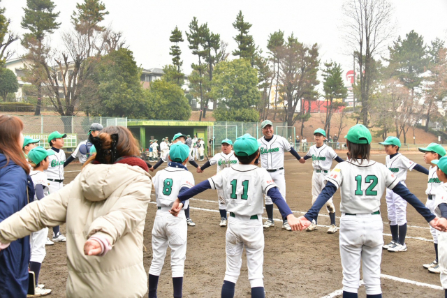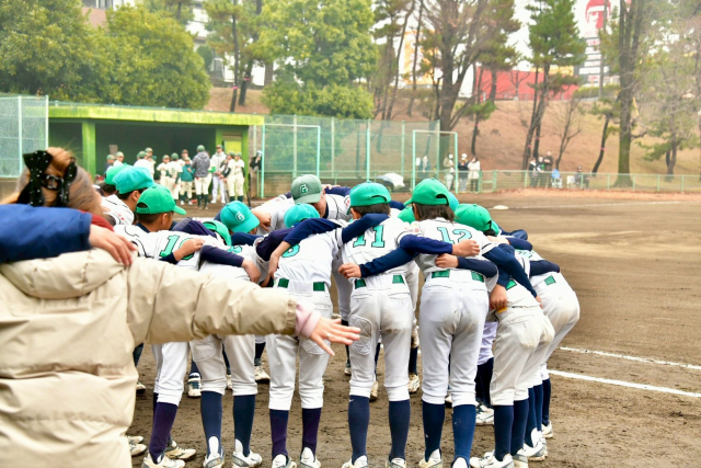田中杯3位決定戦vs若草 昨日と今日の午前で2025年の苦しかった戦いは終わったのか!?3位決定戦前のグリーンズ、選手・監督・コーチたちの表情は明るかった!さあいよいよ始まった2025年度最後の公式戦、1回の裏エラーで出たシュリがワタル内野ゴロの間にかえり、先ずは先取点。先発は公式戦最後の登板となるアマネ、3塁打を打たれるも持ち前の落ち着いた投球術で0点に抑える。2回ウラ、最終戦のため6年生主体の打線で臨んだため、7番のルイ、8番のコウスケが粘って作ったチャンスにアキトがこたえた、センターへの2点タイムリーだ!来年新チームへの期待を感じさせる一打だった(まさに困ったときのアキト頼み?!)その後1点を返されたがアマネは淡々とシュリのミットへ投げ込む。そして5回にもアマネ、ワタルの連打で追加点を取って5対1。5回にリリーフしたコウタが最終回3人をぴしゃりと抑えて「ゲーム」・・・最終戦を勝利で飾り、3位銅メダル。
