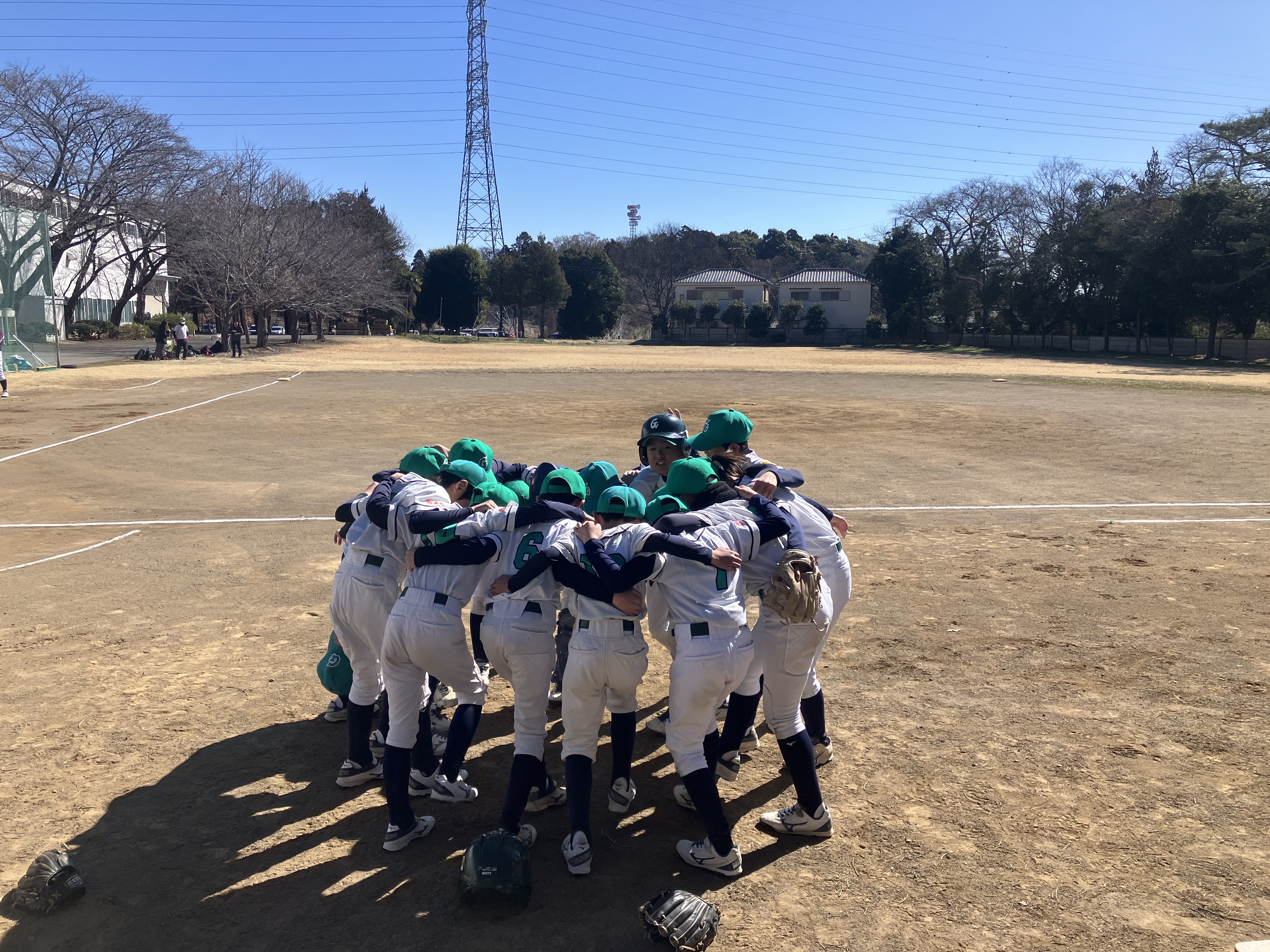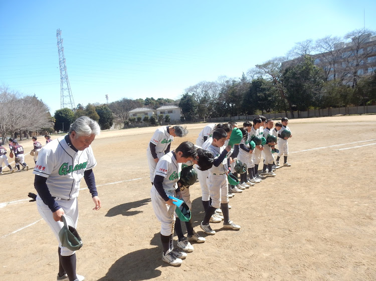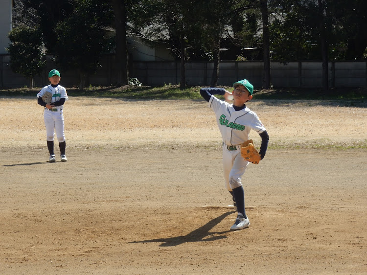 いよいよ新年度県大会予選が始まった。大事な予選の初戦相手は光が丘シャークス、けがで主力選手の力が出ないのがちょっと心配だが何とか踏ん張れるか?新人戦優勝チームとして頑張って欲しい。エナの先発で始まった。初回ランナーを出したが牽制でアウトに出来ず、2,3塁に残してしまい、スクイズで2点を先制されてしまった。エナは新人戦好投した制球が定まらず、2回無念の降板となった、リリーフのレンスケはその後何とか無失点に抑えグリーンズの反撃を待つ。グリーンズは1回の裏コウスケのタイムりーで1点を返した。しかしレンスケがシャークス打線につかまり再び1点を追加され追う展開に。グリーンズはその後もランナーを得点圏に送るがタイムリーが出ないまま。もう追加点が許されないグリーンズはレンスケからアキトがリリーフしたが、先頭打者を出した後は盗塁、バントで楽々と3塁まで進塁を許す苦しい展開が続き、、スクイズ、ヒット、エラーなどで2:6で最終回を迎えた。上位打線から始まったが、シャークスの2番手投手を打てず、3者凡退で敗戦に至った。残念だが戦力ダウンの現状では致し方なし。今後の巻き返しに期待したい!